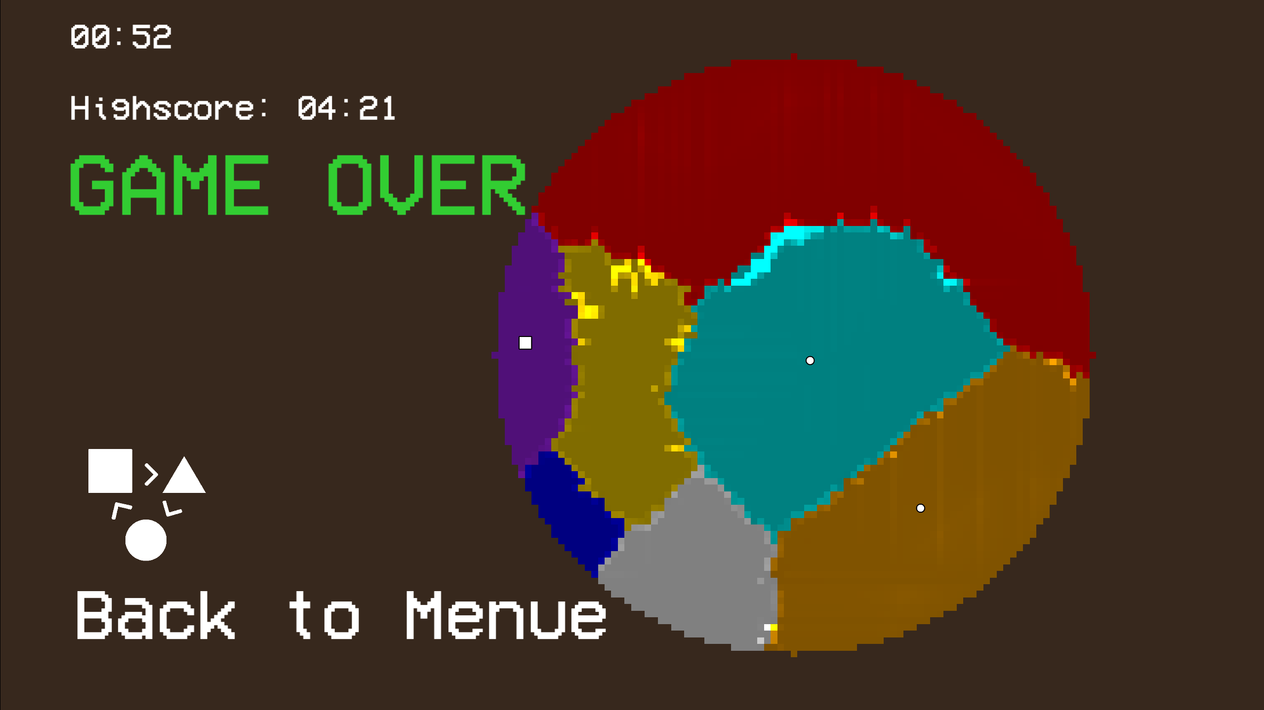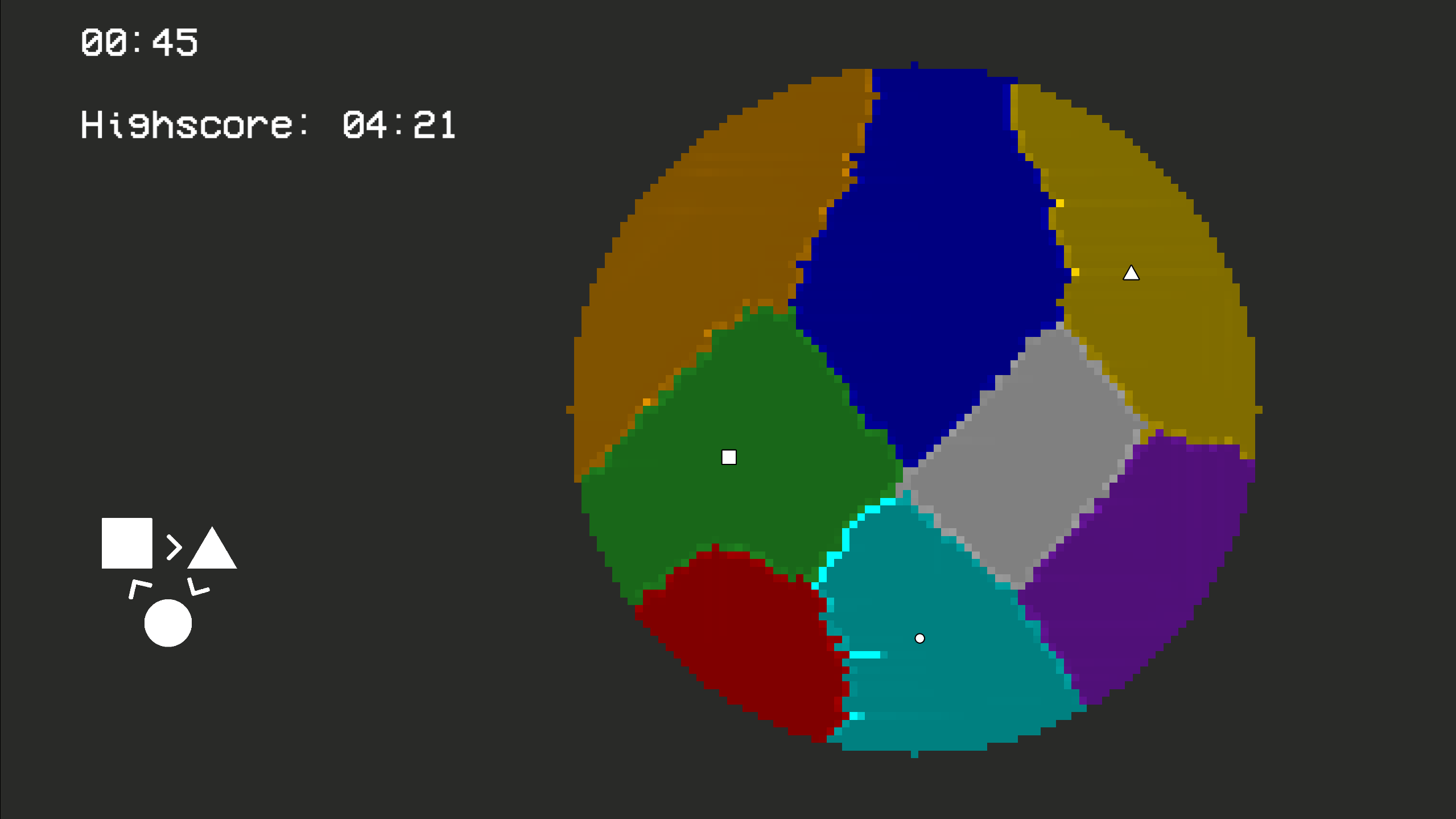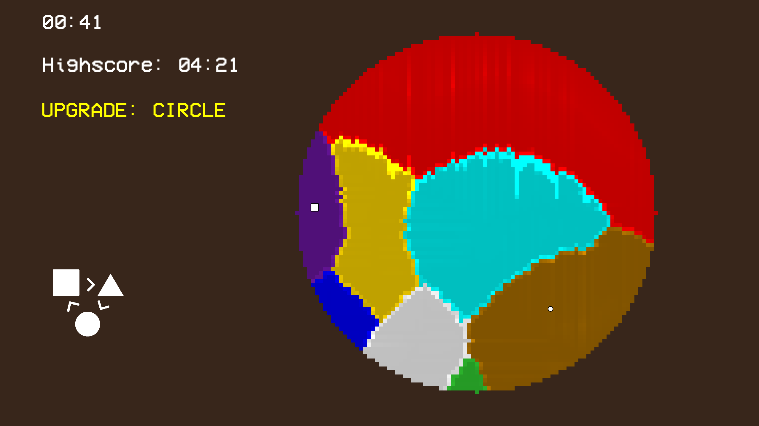 This combination of mechanics leads to interesting dynamics. First, it is not always best to nurture the smallest colony. The decision lies between battling the largest colony and helping the smallest one survive. With the upgrade system, colonies can emerge into complex patterns where they maintain an equilibrium by creating a spiral of forces.